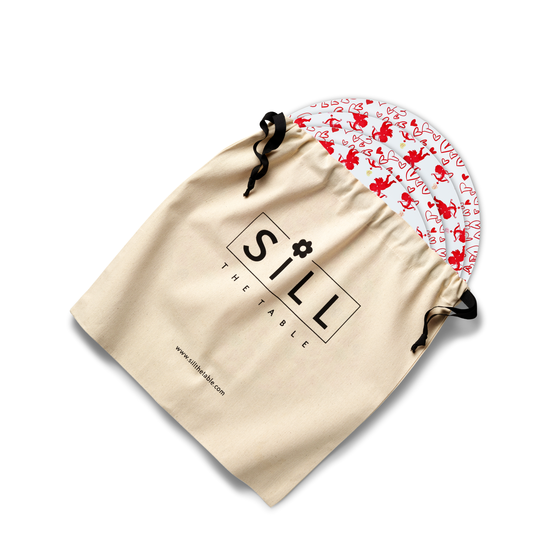We coupled together two of our most beloved designs for this Valentine's Day placemat: our hand drawn red hearts are paired with adorable Cupids in this placemat. This placemat is perfect for Valentine’s Day breakfast, dinner à deux or crafting at the kitchen table. It can be used for Valentine’s day and throughout the year. One set includes four placemats and a drawstring storage bag made of organic, recycled cotton.