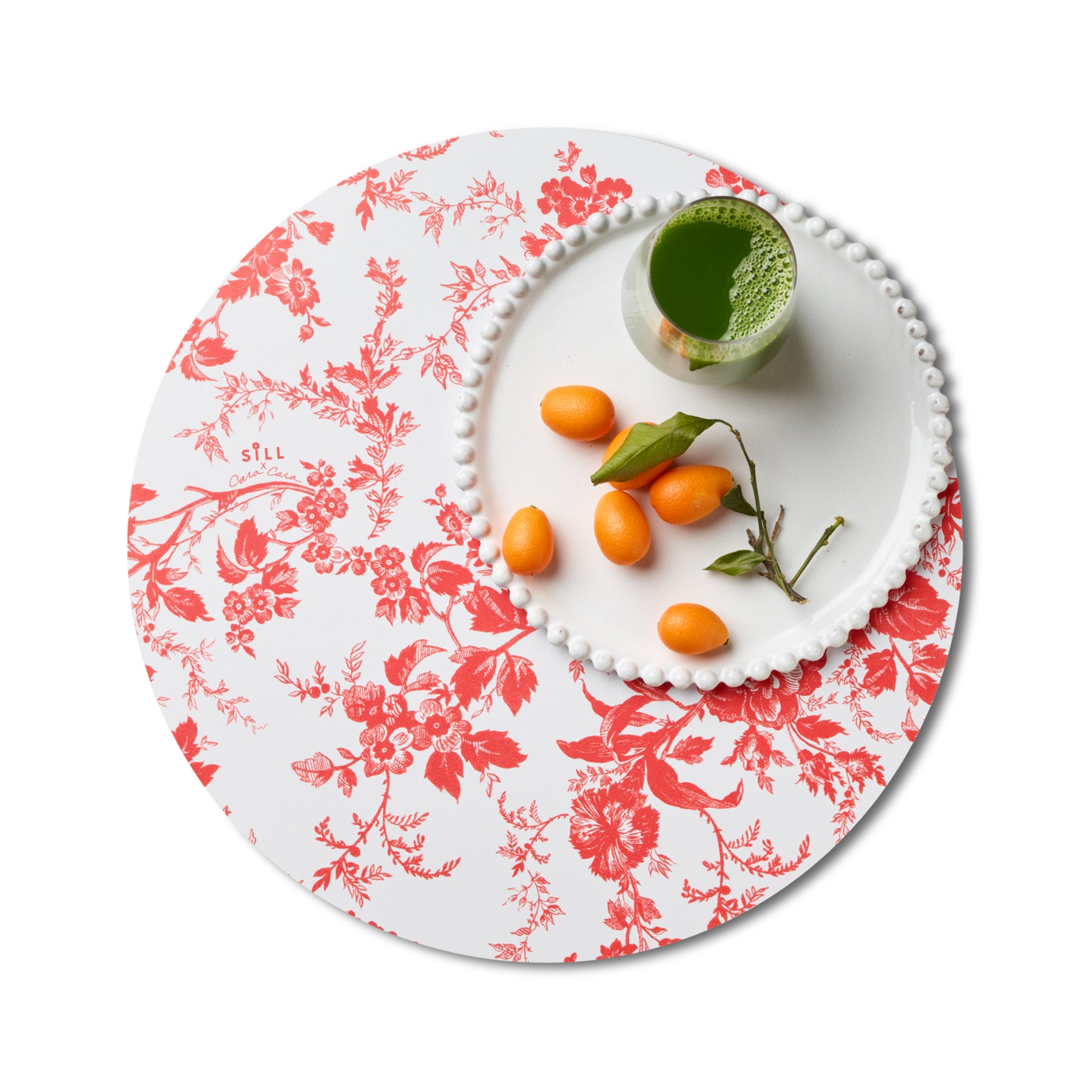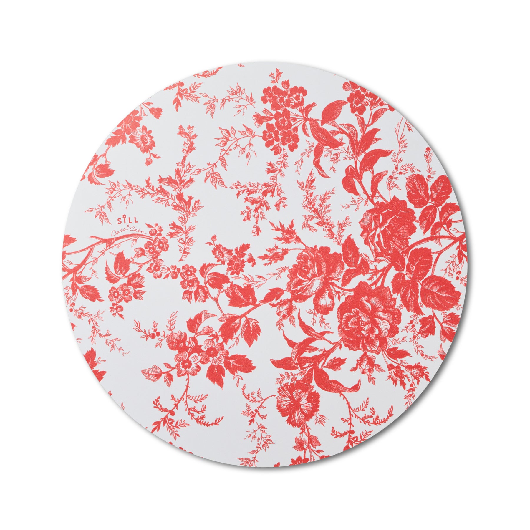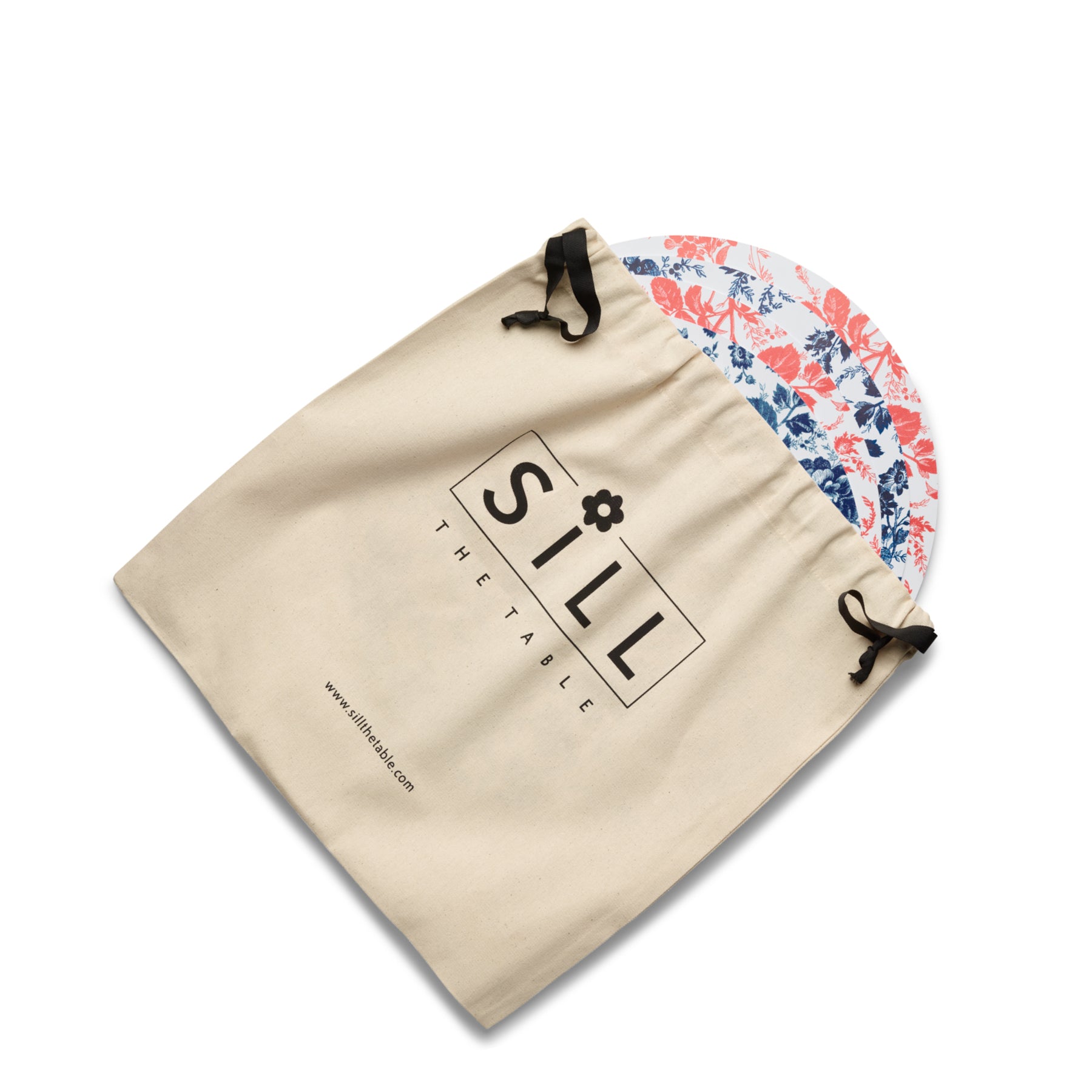 This SiLL ✕ Cara Cara placemat features the fashion brand's signature vintage floral print in bright, striking hues. The design is carried out on both sides of the placemat but in different colorways. One set includes four placemats and a drawstring storage bag made of organic, recycled cotton.