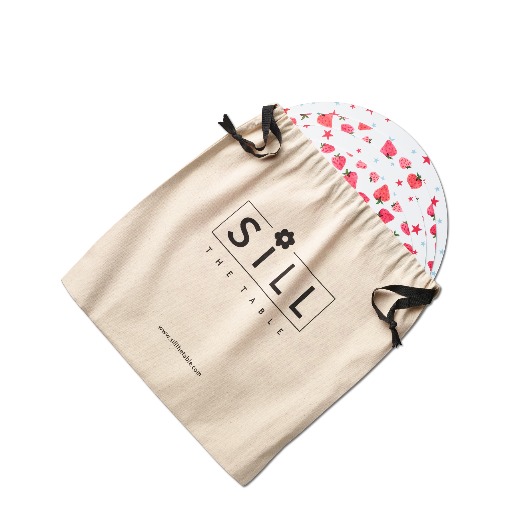 Our summer-themed placements promise to help you savor the season! With a cluster of red-and-blue stars on one side and sweet, bright strawberries on the reverse, these placemats will enliven any summer function. But, of course, they can—and should!—be used all throughout summer, especially when dining al fresco. One set includes four placemats and a drawstring storage bag made of organic, recycled cotton.